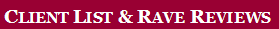 ABEX ABLE COMPUTERS AC DELCO ACUSON ALLIED VAN LINES AMERICAN GOLF CORPORATION AMERICAN PAYROLL ASSOCIATION AMERICAN STANDARD APCOA PARKING APICS ARCO ARROW ELECTRONICS AT&T BANK OF AMERICA BECKMAN, INC. BERGEN BRUNSWIG BESAM BEXEL BLOOMFIELD BLUE CROSS C.W. COOK CA DELI ASSOCIATION CA HWY PATROL ASSOCIATION CALIFORNIA STAR MOTORS BENZ CHEVROLET CHILI'S RESTAURANT CIPHER, INC. COLDWELL BANKER CRC STA LUBE CRYOVAC CYBER PATROL (view video testimonial) DAILY NEWS DATA PRODUCTS DELTA FAUCETS DETROIT NEWS DODGE DOW HICKAM ERNST & YOUNG EXXON/MOBIL FINANCIAL HORIZONS FLOWERS GROWERS ASSOCIATION FOOD PACKING INST. FOODTOWN FOSTER/HIGGINS G.T.E. DIRECTORIES GORDON'S GIN HEWLETT PACKARD