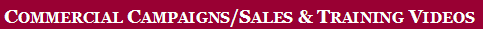COMMERCIAL CAMPAIGNS: View selected commercial campaigns, television appearances, sales and marketing video samples and a client testimonial below: